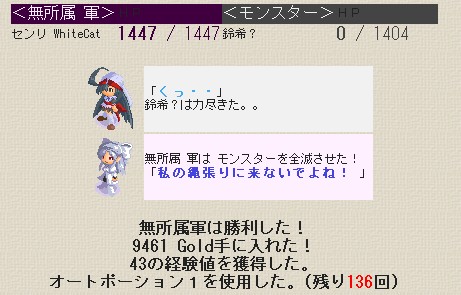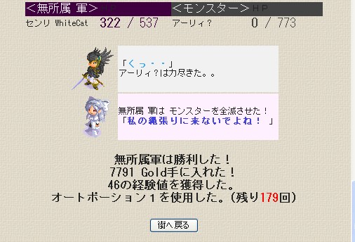 最後は姫の体調が悪かったので限界と判断、最後に攻撃して停戦の話し合いで終了いたしました