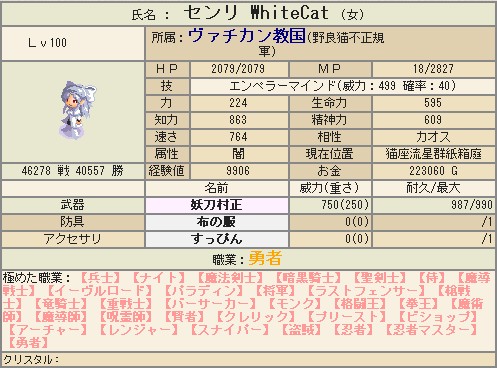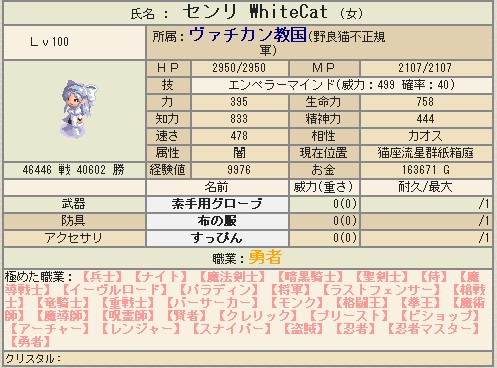 なかなかの鬼ステでしたが、伝英には届かなかったので即転職!